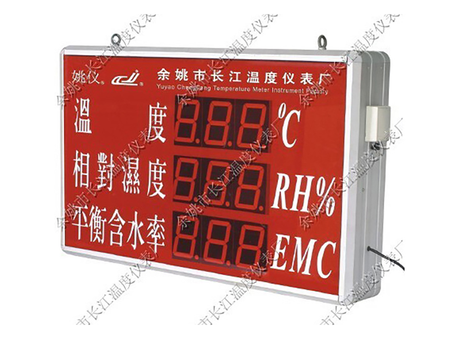 大屏溫濕度顯示儀,采用單(雙)面三排數(shù)碼管同時(shí)顯示溫度測(cè)量值、濕度測(cè)量值及平均含水率,溫濕度測(cè)量誤差可修正,適用于木材加工等場(chǎng)所的溫濕度和含平均水率測(cè)量。